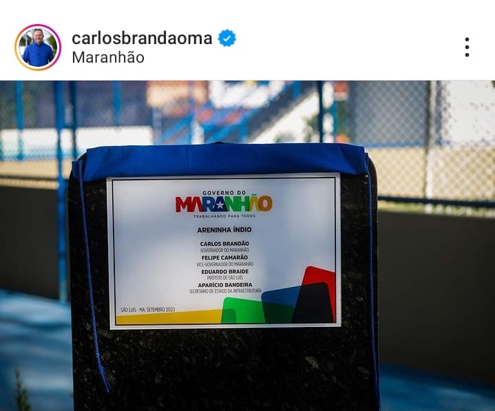 O gesto do governador volta a levantar possibilidade para aliança com o prefeito de São Luís nas eleições do próximo ano na capital maranhense. Após a inauguração da Areninha Esportiva, o próprio Brandão fez questão de expor a imagem da placa em suas redes sociais.
