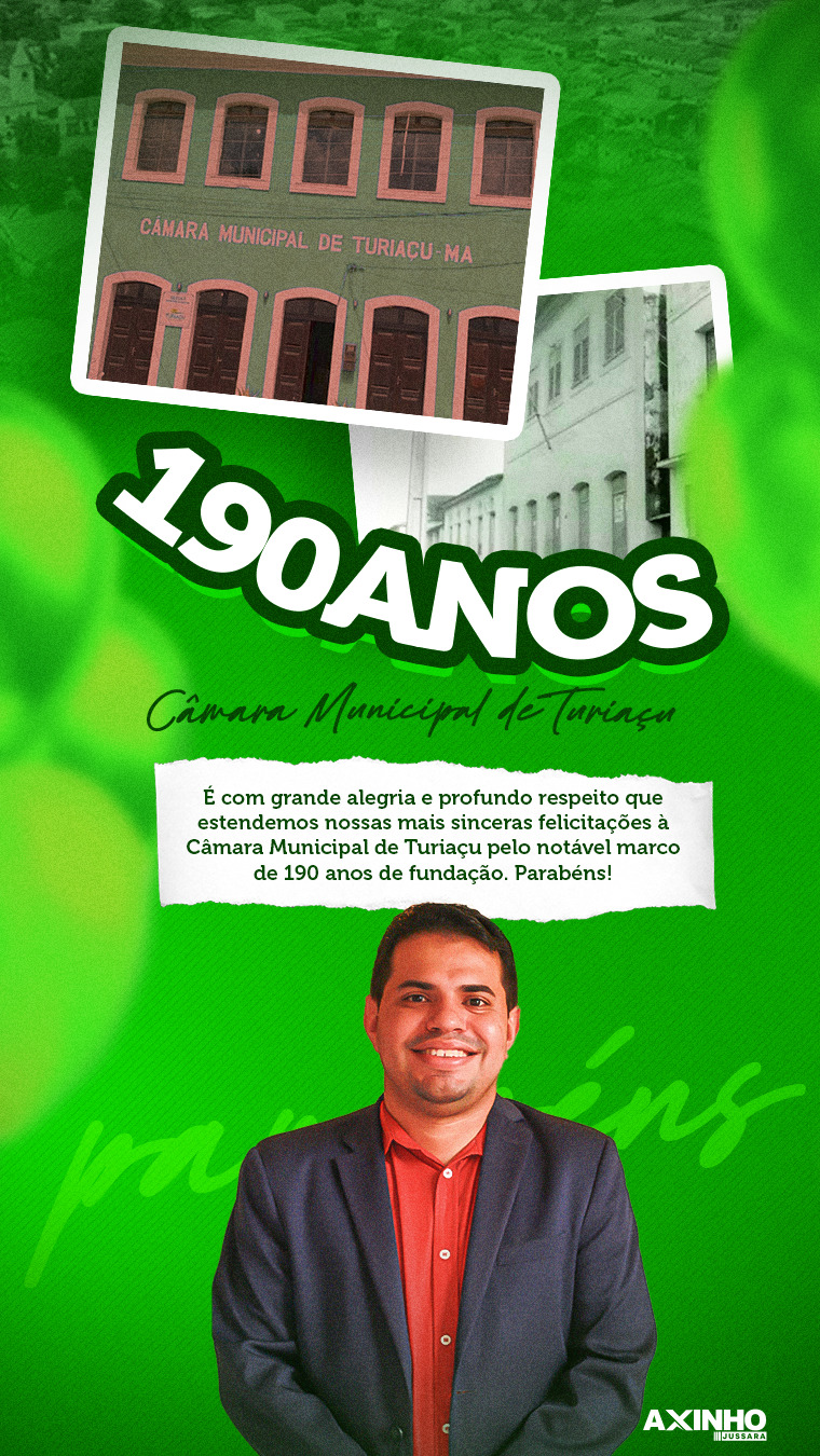 “Parabéns à Câmara Municipal de Turiaçu-MA pelos seus 190 anos de fundação. Estamos juntos na celebração deste importante marco, com esperança e otimismo pelo que está por vir. Com estima e reconhecimento”, concluiu.