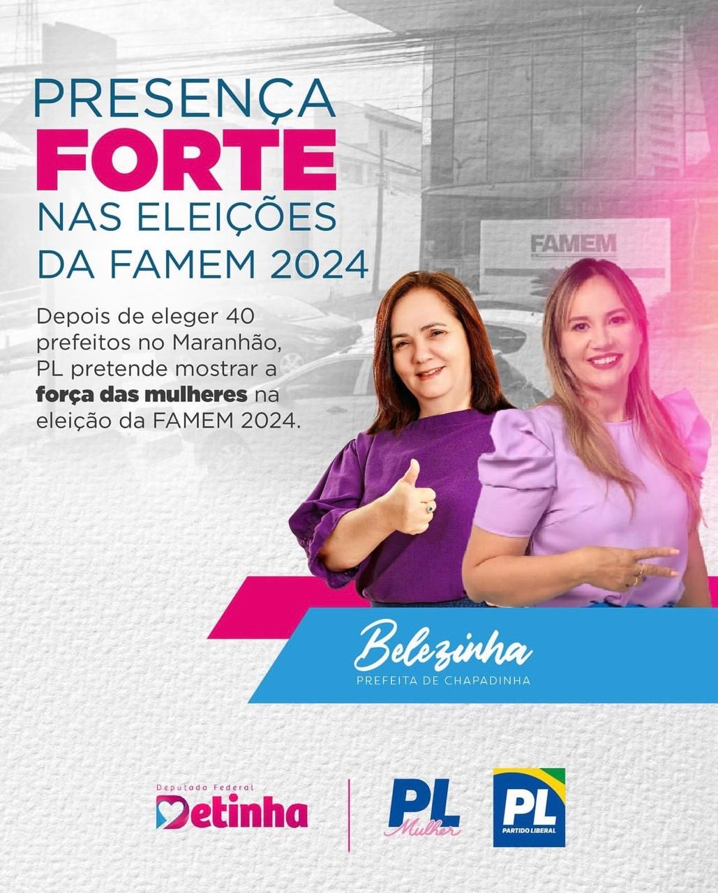“Depois de eleger 40 prefeitos no Maranhão, PL pretende mostrar a força das mulheres na eleição da Famem. Somos o maior partido do estado e a prefeita Belezinha representa a força das nossas mulheres”, escreveu a deputada na mensagem postada na rede social.
