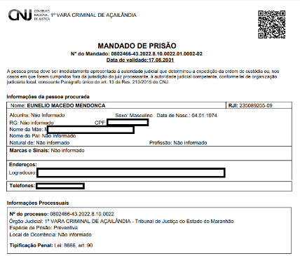 Para conferir o mandado de prisão contra os dois réus na íntegra, basta clicar aqui