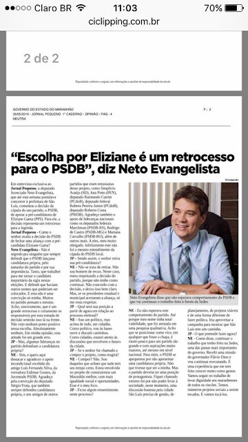 Amigos, queria agradecer o apoio recebido aqui no face para a nossa pré candidatura à prefeitura de São Luís,foi de fundamental importância, infelizmente não será mais possível, então quero dividir com vocês esta entrevista que concedi ao Jornal Pequeno.