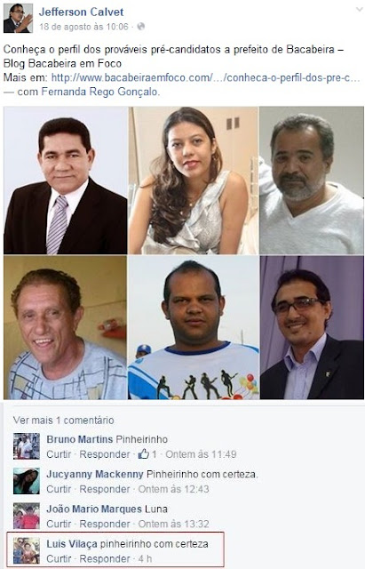 Vilaça pode até ter enganado o prefeito e seu grupo com esse “boato” de uso indevido de sua rede social, mas a população sabe muito bem quais são as suas verdadeiras preferências para administrar a prefeitura de Bacabeira. O tempo dirá se esse tal ‘outrem’ foi o não um personagem fictício criado para justificar a escolha do parlamentar para as eleições de 2016. Aguardem!