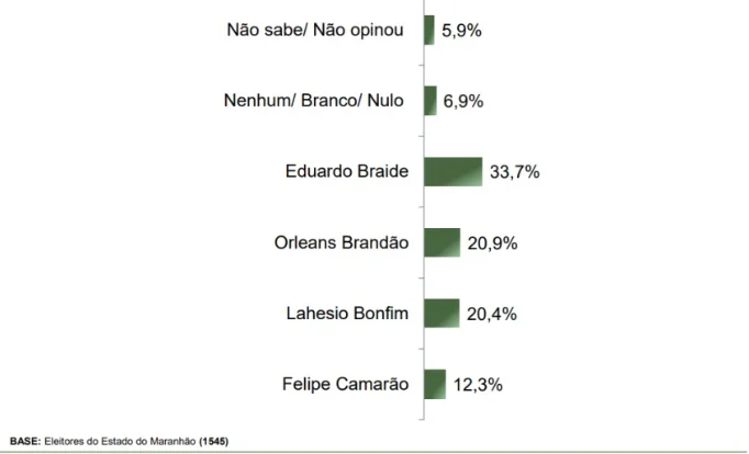 No levantamento divulgado hoje, aparecem atrás dos favoritos o ex-prefeito de São Pedro dos Crentes, Lahesio Bonfim (Novo), com 20,4% das intenções de voto, e o vice-governador, Felipe Camarão (PT), com 12,3%. Na pesquisa anterior, Bonfim figurava com 24, 9, e perdeu quatro pontos no período. Em comparação com os dois estudos, Camarão também ficou estável.
