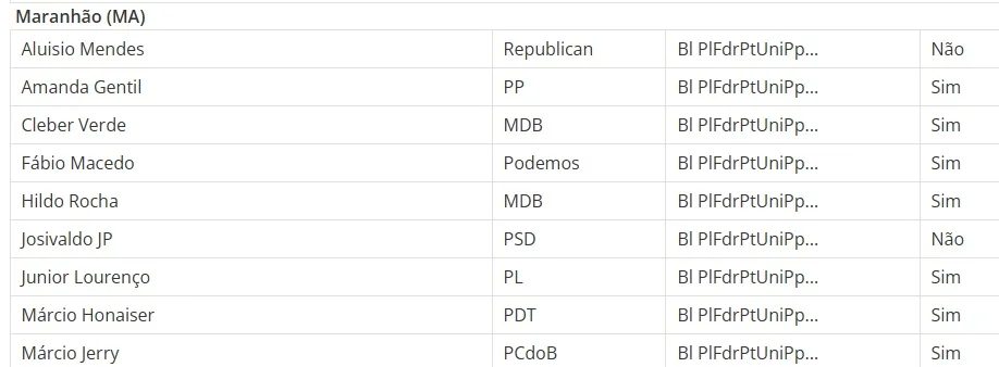 Dos deputados maranhenses, Cléber Verde, Hildo Rocha, Márcio Jerry, Márcio Honaiser, Junior Lourenço, Fábio Macedo e Amanda Gentil votaram a favor da proposta. Apenas Josivaldo JP e Aluisio Mendes registraram voto contrário.
