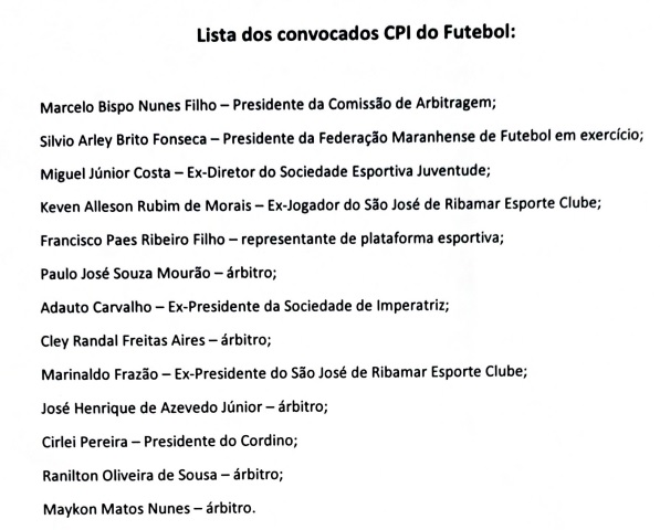 Nessa ocasião, está previsto o depoimento do presidente da FMF, Sílvio Fonseca, que atualmente ocupa o cargo em substituição a Antônio Américo, além do presidente da Comissão de Arbitragem, Marcelo Bispo Nunes Filho, e a participação do delegado da Delegacia de Defesa do Consumidor, que, embora não conste na lista, é aguardado para prestar esclarecimentos à CPI.