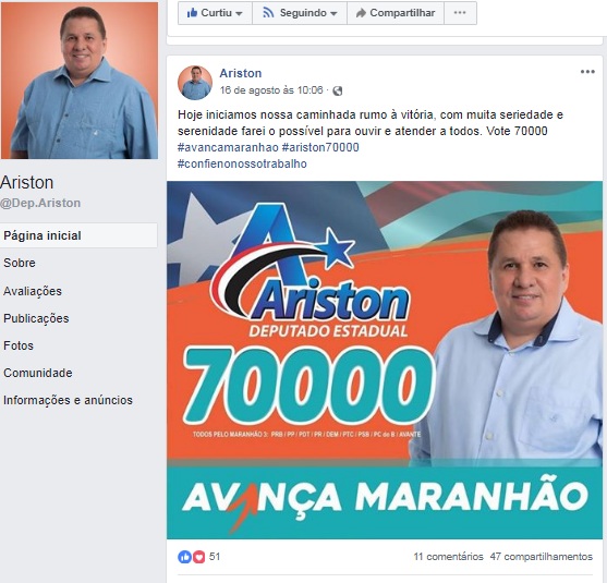 Os candidatos a deputado federal Dr. Elizabeth Gonçalo (Avante) e a deputado estadual Ariston (Avante), estão apostando no alcance das mídias sociais (Twitter, Instagram, Facebook e Watsap) e na militância para conseguir sentar em uma cadeira na Câmara dos Deputados e na Assembleia Legislativa.