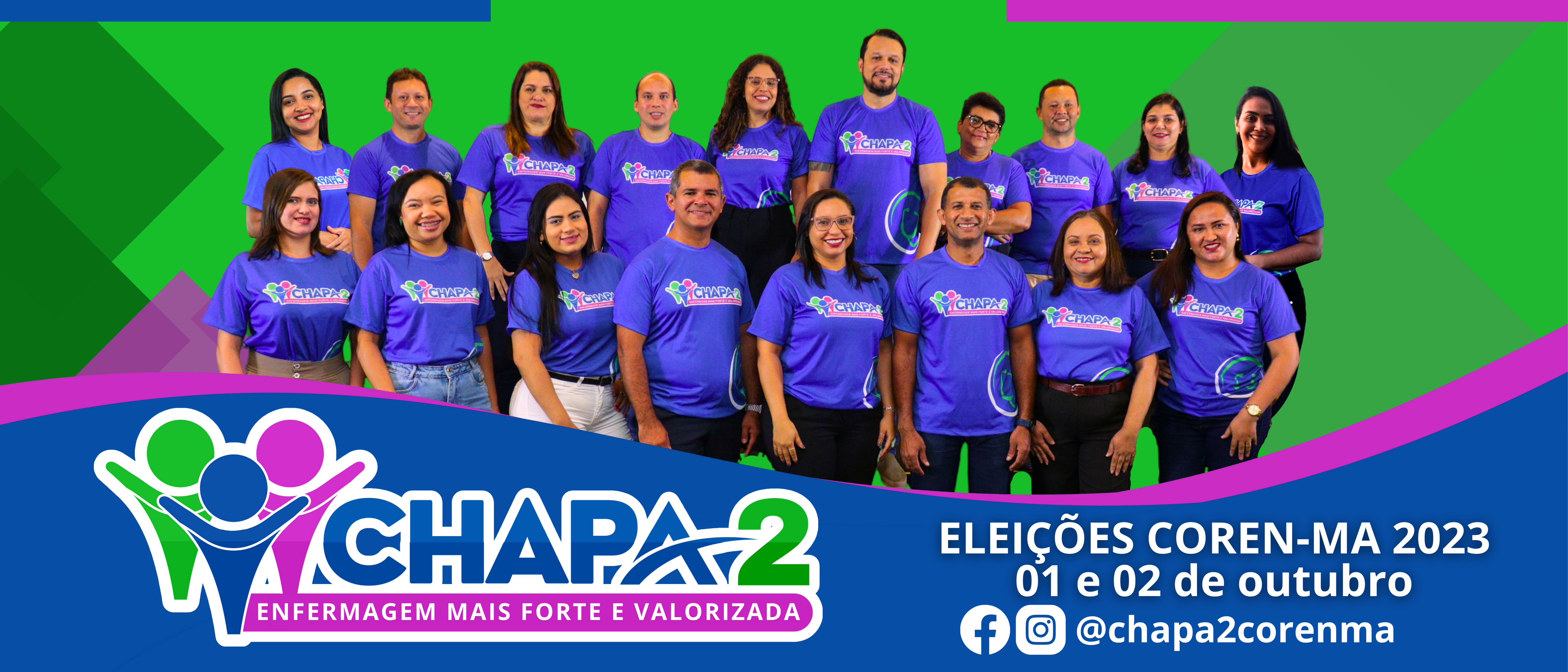 A Chapa 2, atual gestão do Coren-MA, traz um histórico de gestão atuante e dinâmica, sendo uma das grandes incentivadoras da luta pelo Piso Salarial da Enfermagem, uma conquista da categoria que agora vem sendo implementado. Nas propostas a melhoria e expansão dos trabalhos já iniciados, principalmente com a valorização do profissional através de ações e projetos, com a garantia do exercício legal da profissão com ética.