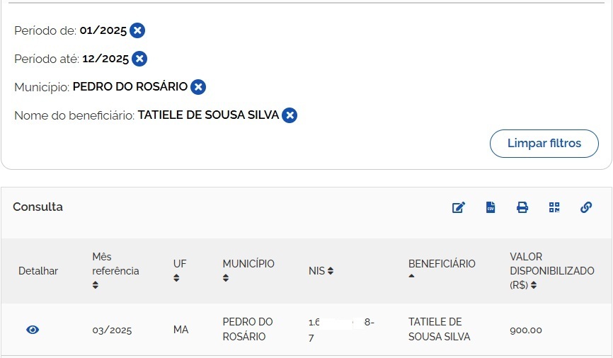 Ela também aparece no CadÚnico com status “ativo” como beneficiária de programas sociais, entre os quais se destaca o Bolsa Família, conforme documento em anexo.