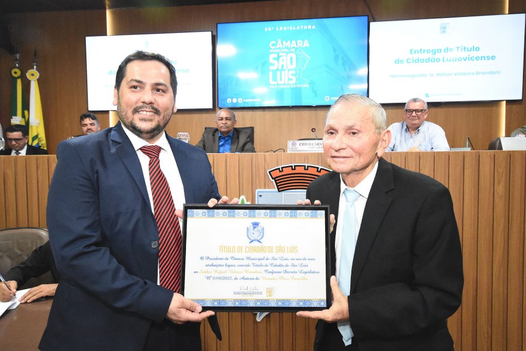 O secretário Nacional de Políticas Penais, Rafael Velasco Brandani, recebeu o título de cidadão ludovicense na tarde desta sexta-feira (22), durante sessão solene realizada na Câmara Municipal de São Luís (CMSL).