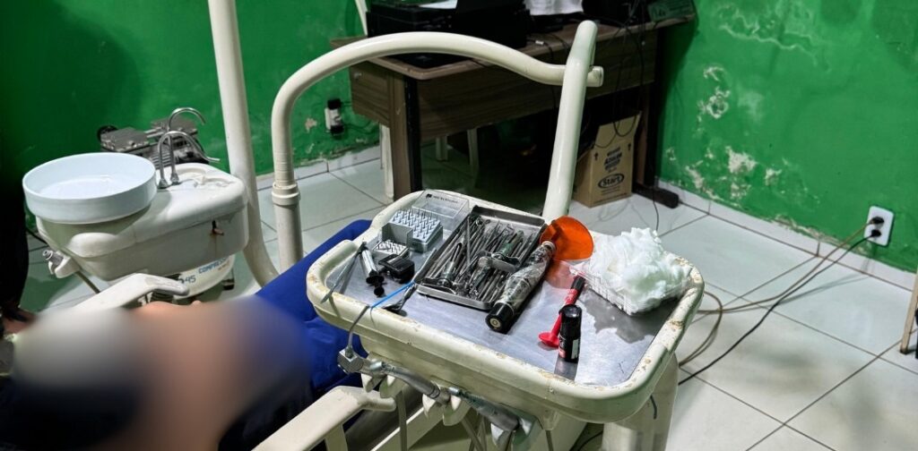 Durante a fiscalização, a equipe do CRO-MA encontrou o técnico realizando atendimentos clínicos, com outros pacientes ainda aguardando na recepção improvisada. Segundo o Conselho, a clínica clandestina estava em condições precárias de higiene, com materiais enferrujados e também com próteses mal armazenadas.