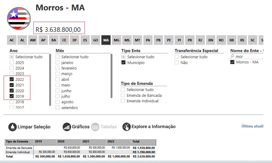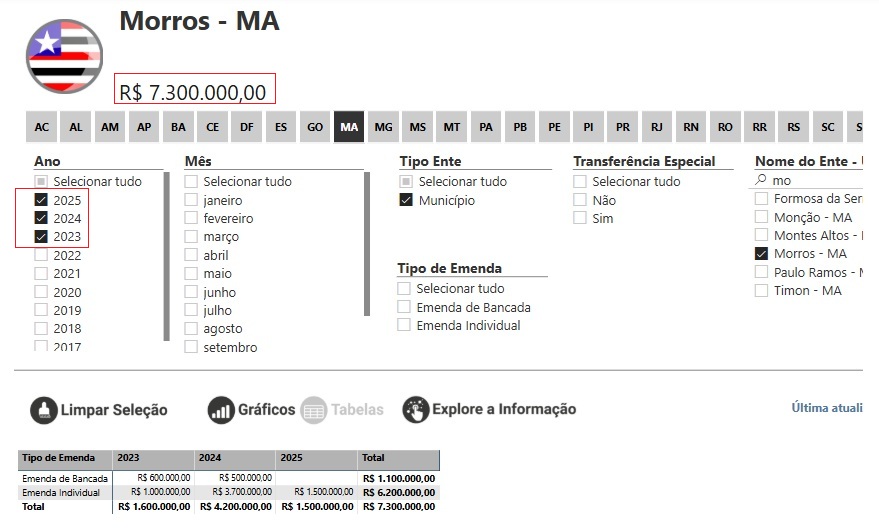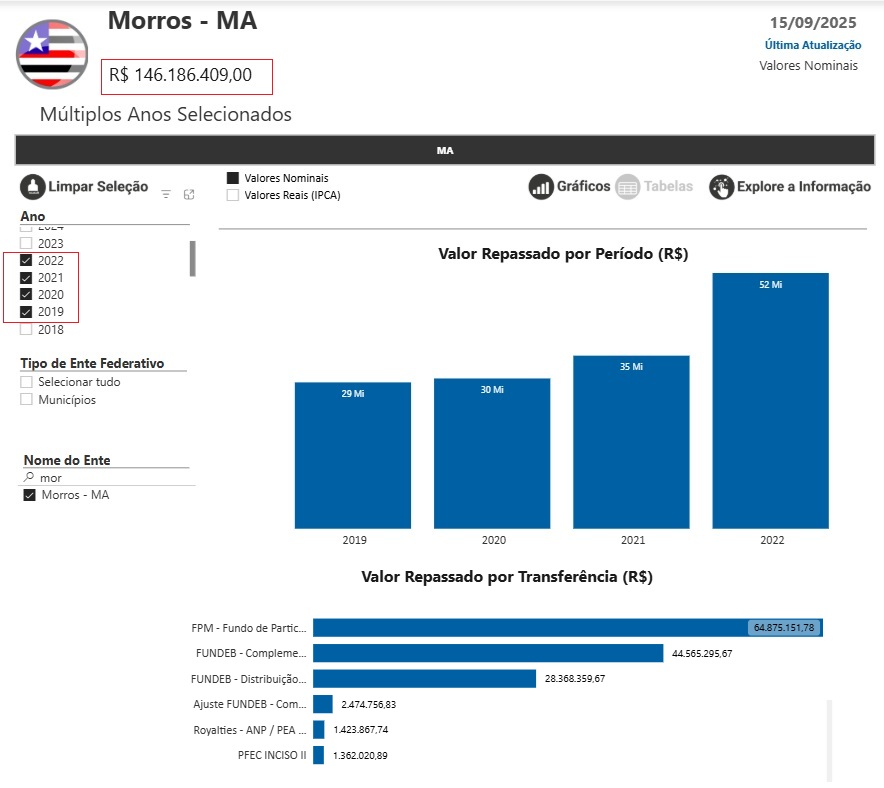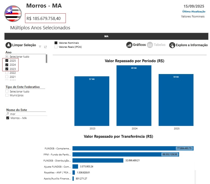 Somente nos primeiros nove meses de 2025, a cidade morruense já foi agraciada com cerca de R$ 59 milhões de reais, valor que supera os R$ 52 milhões que recebeu ao longo de 2022, último ano do governo Bolsonaro.
