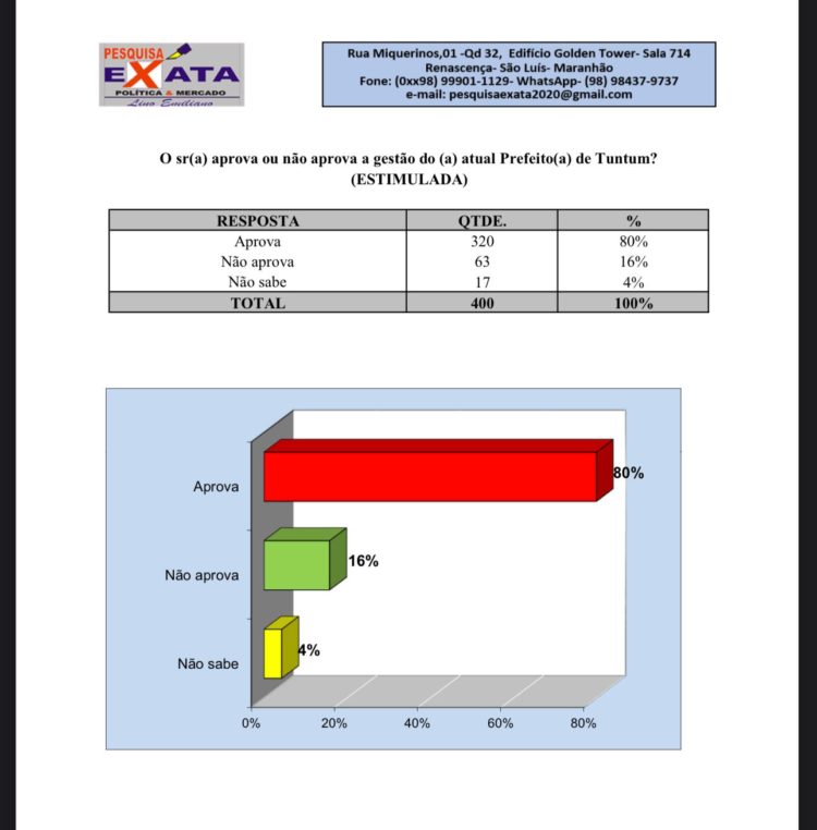 No mês de março deste ano, outra pesquisa do mesmo instituto apontou que o atual mandatário de Tuntum tinha uma gestão aprovada em 80% junto aos eleitores do lugar. O problema, entretanto, é que essa avaliação não refletiu em votos na segunda rodada do levantamento, mas revelou uma espécie de ‘temandos’, eleitores de Tema que aprovam Fernando, principal adversário político do ex-prefeito tuntuense.