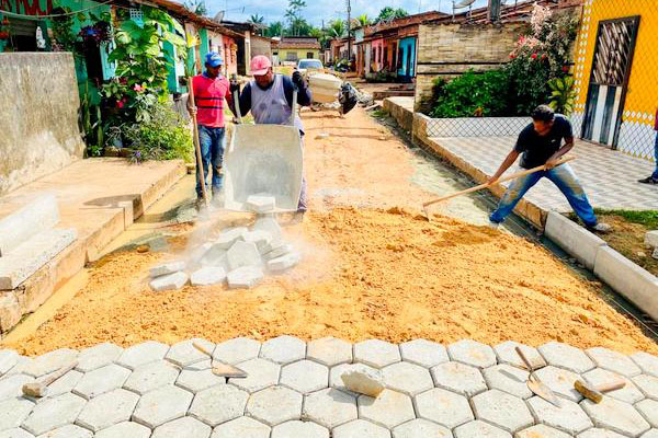 As ações de pavimentação fazem parte do programa Rua da Nossa Gente, do município — um projeto de pavimentação com a utilização de blocos de concreto sextavados, que em menos de dois anos beneficiou cinco bairros e um povoado da cidade.