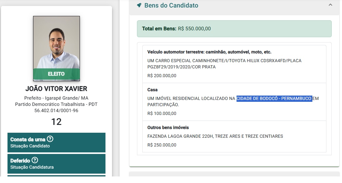 O prefeito de Igarapé Grande (MA), João Vitor Xavier (PDT), suspeito de ter matado a tiros um policial militar no Maranhão, pode ter fugido para a cidade de Bodocó, em Pernambuco. O blog de Isaias Rocha busca confirmar a suspeita junto à Polícia Civil do Maranhão (PCMA), baseando-se em um endereço vinculado ao gestor em território pernambucano.