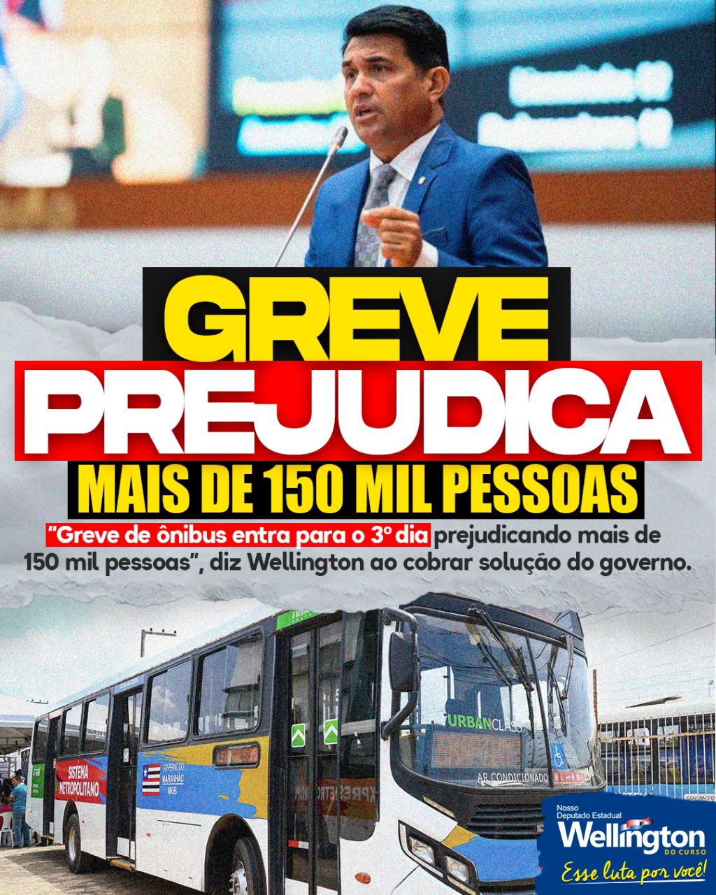 Sobre o assunto, Wellington disse que a greve prejudica mais de 150 mil pessoas que necessitam do transporte semiurbano para se locomover, motivo pelo qual cobrou um posicionamento firme e efetivo por parte do Governo do Estado.