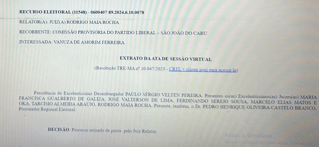O Tribunal Regional Eleitoral do Maranhão (TRE-MA) vai julgar um pedido de registro de candidatura extemporâneo, por substituição de candidato, formulado pelo Partido Liberal (PL) de São João do Carú/MA, onde indica Vanuza de Amorim Ferreira, para participar das Eleições de 2024.