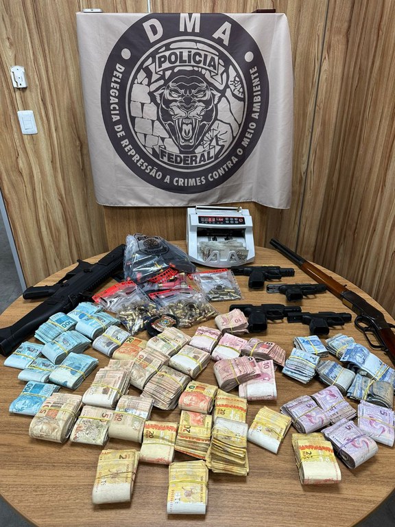 O líder do grupo criminoso teve o mandado de prisão preventiva cumprido em Parauapebas/PA, enquanto seu auxiliar direto foi preso preventivamente em Santa Inês/MA. Em Santa Izabel/PA, foram apreendidos cerca de R$ 200 mil em espécie, quatro pistolas, um fuzil, uma espingarda e uma máquina de contar dinheiro.
